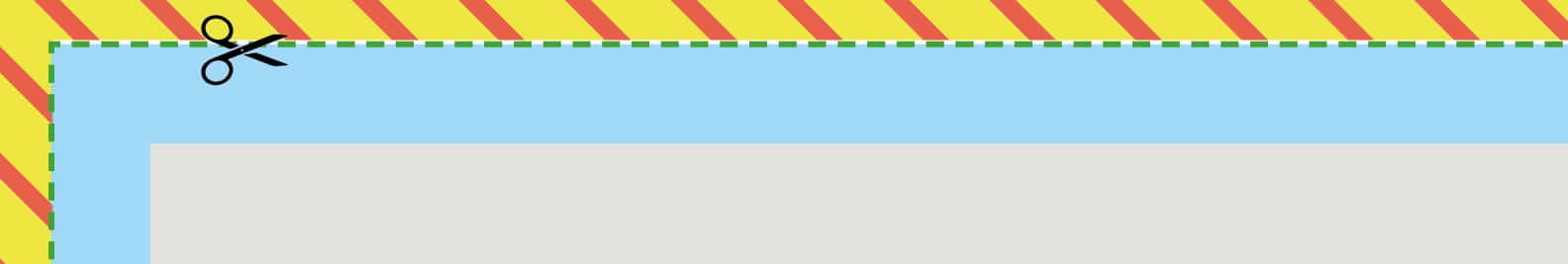 Vinyl Banners: All standard vinyl banner artwork should be supplied with at least 5mm bleed (when scaled to full-size). This ensures your printed design can be hemmed or trimmed with no white edges showing.