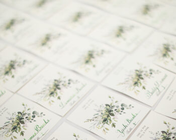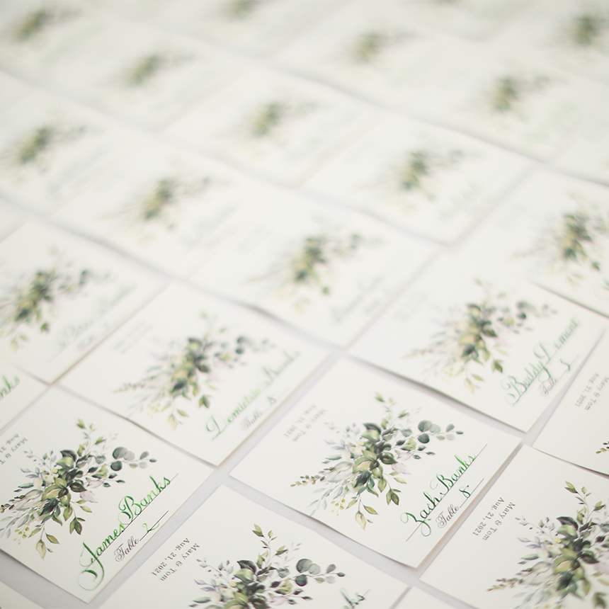 Printing a small run-on quantity is inexpensive compared to last-minute reprints, so allow a 10% margin when you order. This saves both money and stress when guest list changes inevitably crop up.